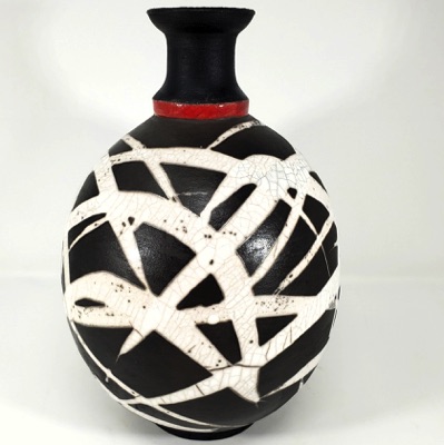 When I’m not in the studio, I am a full-time research chemist with a 30+ year career in international science. My background in science draws me to the raku process and inspires a level of control that could be considered unachievable. Striving to understand the process and the need to control outcomes fuels my creativity.